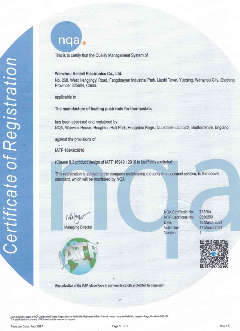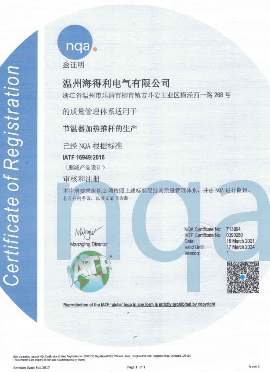 海得利電氣公司是集科研、開發、生產、銷售為一體的大型綜合性民營企業。公司專業生產節溫器加熱推桿、熱流道加熱器、單端加熱元件、真空半導體加熱器等各類加熱器,產品廣泛應用于汽車、半導體、軍工、模具、動車、食品、醫療、通訊、家電等各個領域,致力于將品牌以更多樣化的形式進行推廣,將服務與產品以更高效、更便捷、更優質的方式服務每一個客戶。